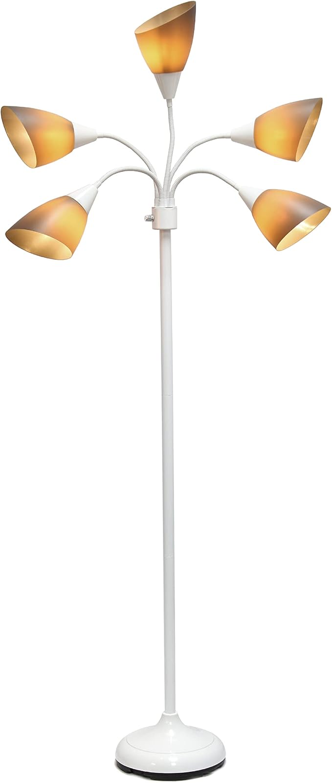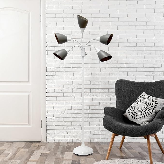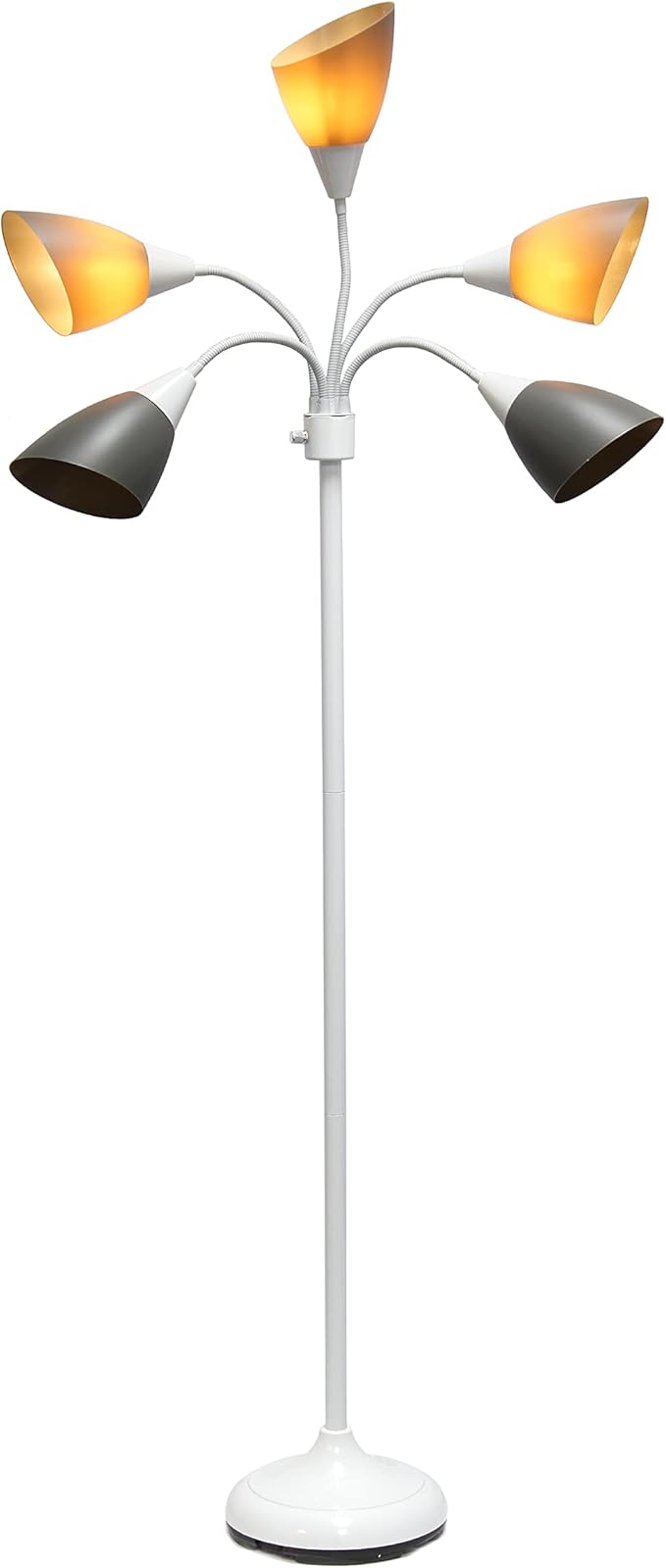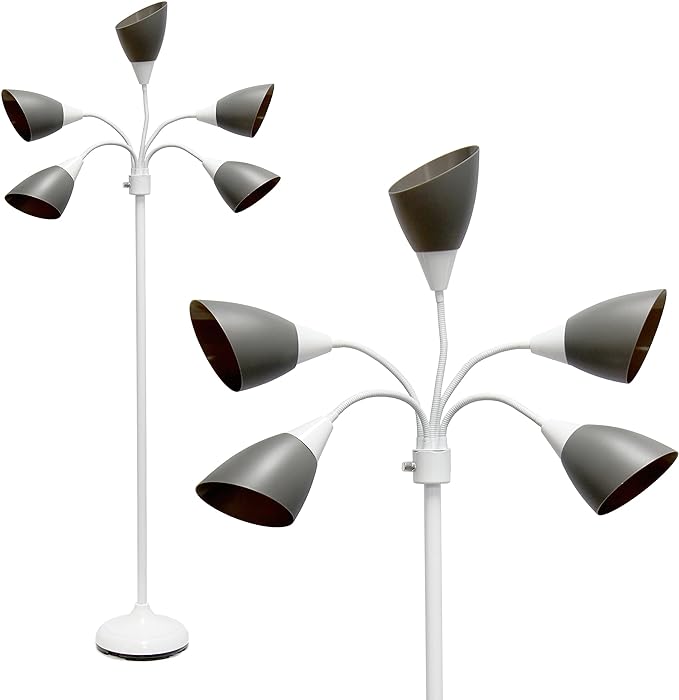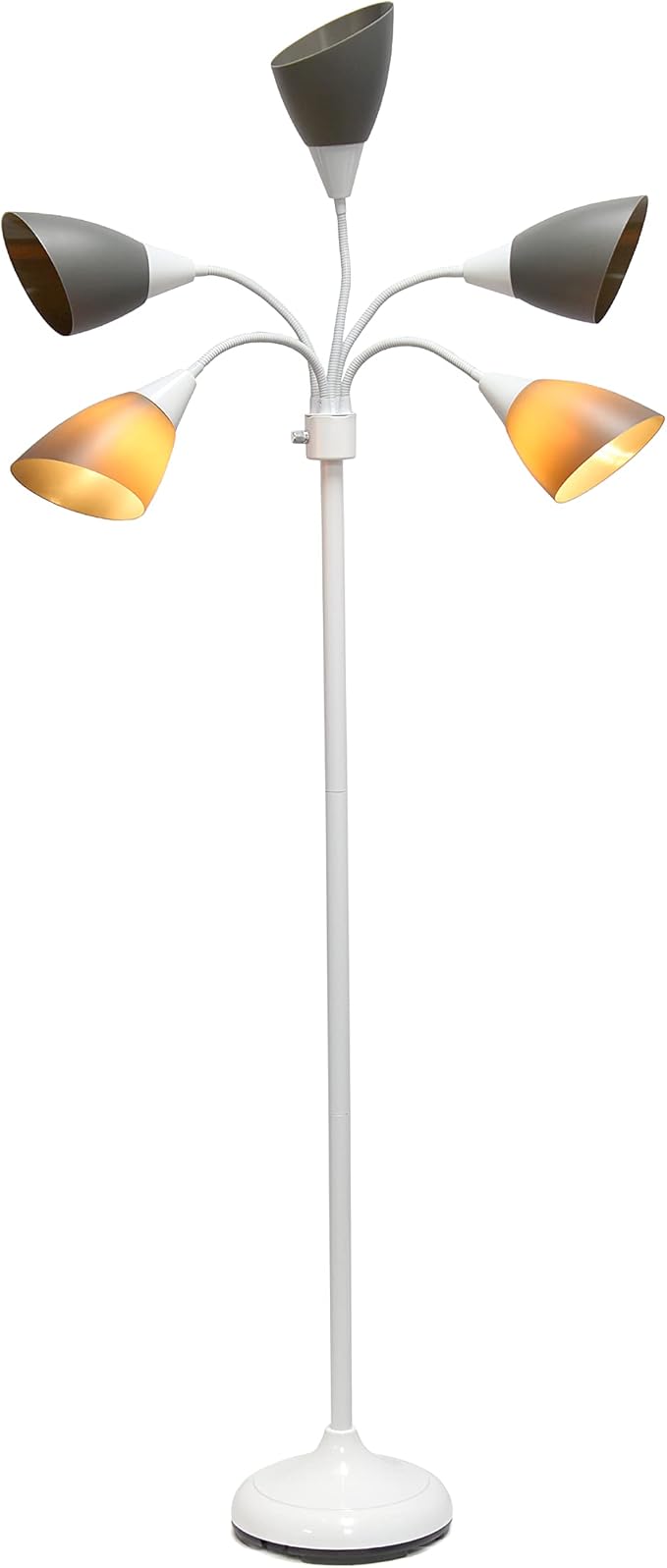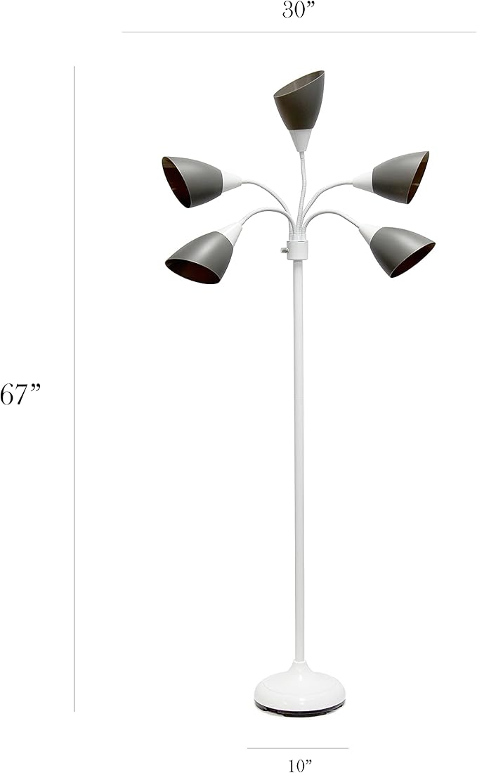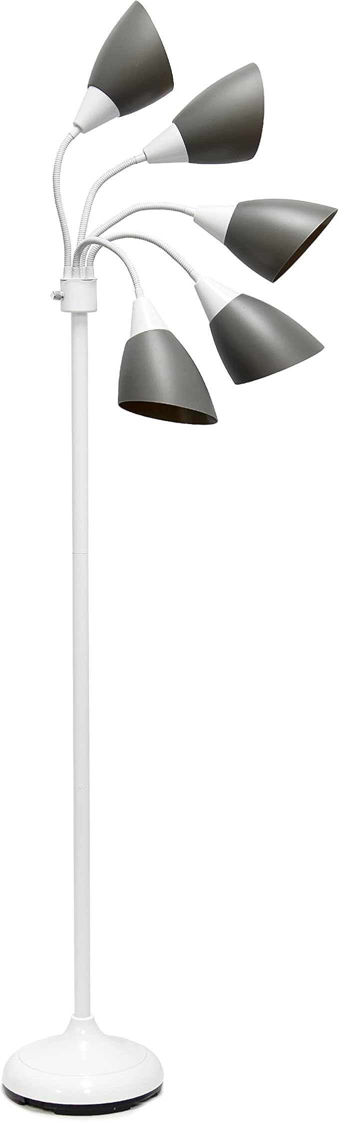 Simple Designs LF2006-GOW 67" Contemporary Multi Head Medusa 5 Light Adjustable Gooseneck White Floor Lamp with Gray Shades for Kids Bedroom Playroom Living Room Office