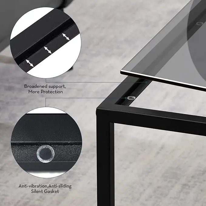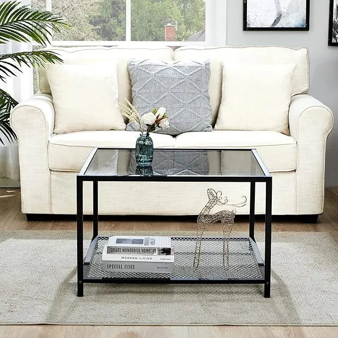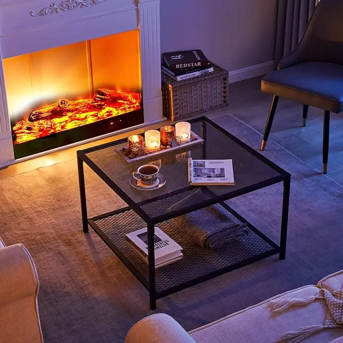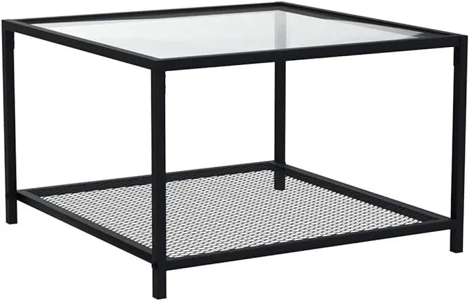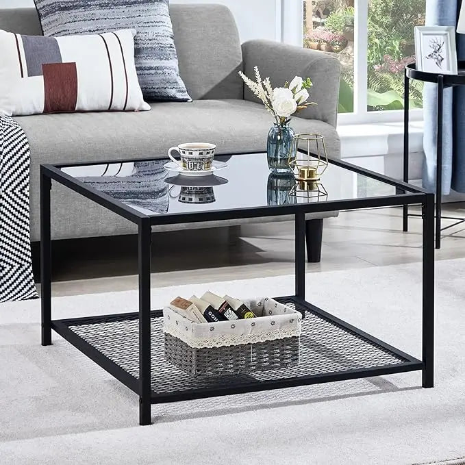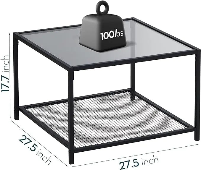 SAYGOER Coffee Table with Storage Modern Glass Coffee Tables Square Industrial Simple Center Table for Living Room Home Office Small Space 27.6 x 27.6 x 17.7 Inches Easy Assembly Gray Black