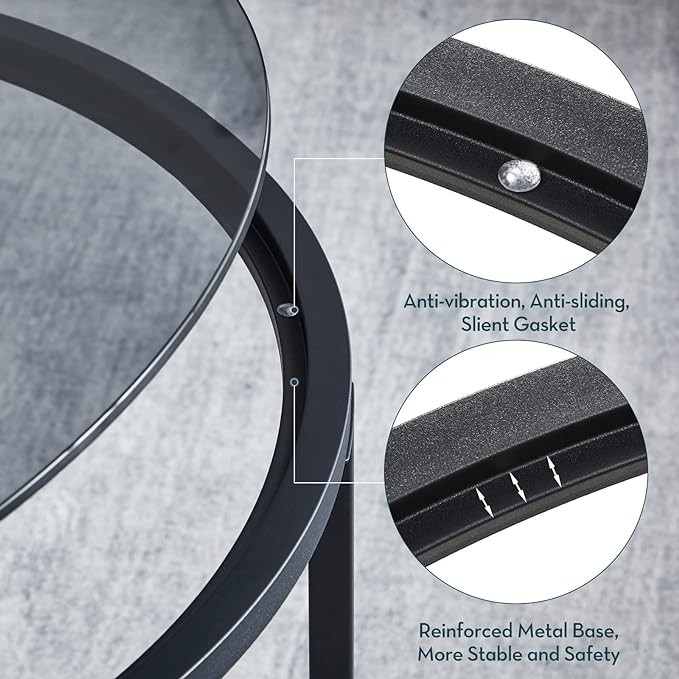 SAYGOER Round Coffee table Glass Coffee Tables for Small Space Simple Modern Center Table for Living Room Home Office, Sofa Side Table with Metal Steel Frame, Easy Assembly, Gray Black