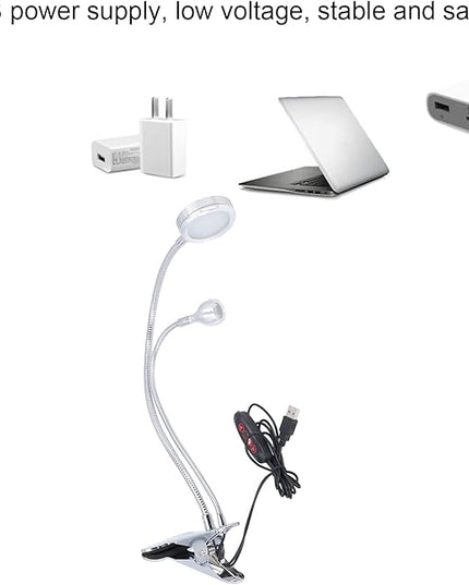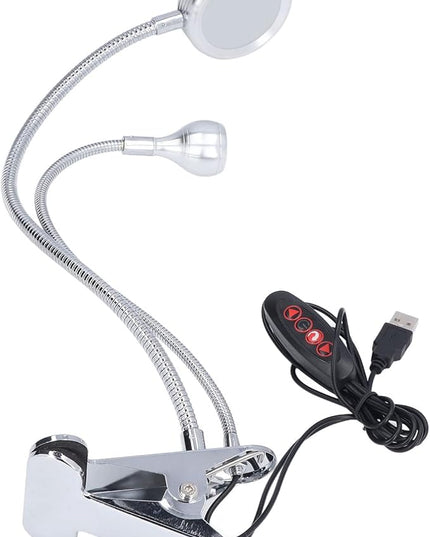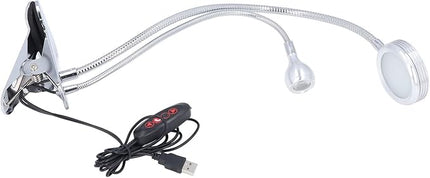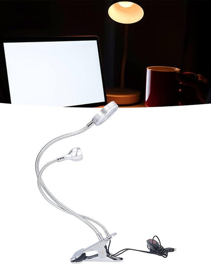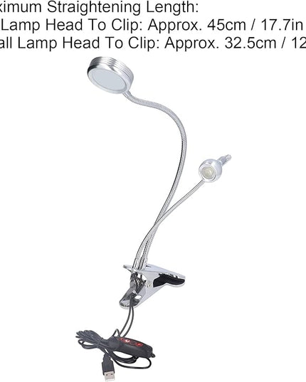 Zerodis LED Desk Lamp, Dimmable LED Clip Desk Lamp 10 Gear Adjustable USB LED Double Head Gooseneck Table Lamp Reading Lamp for Bedroom