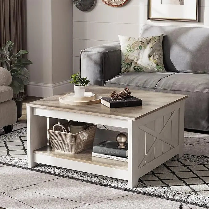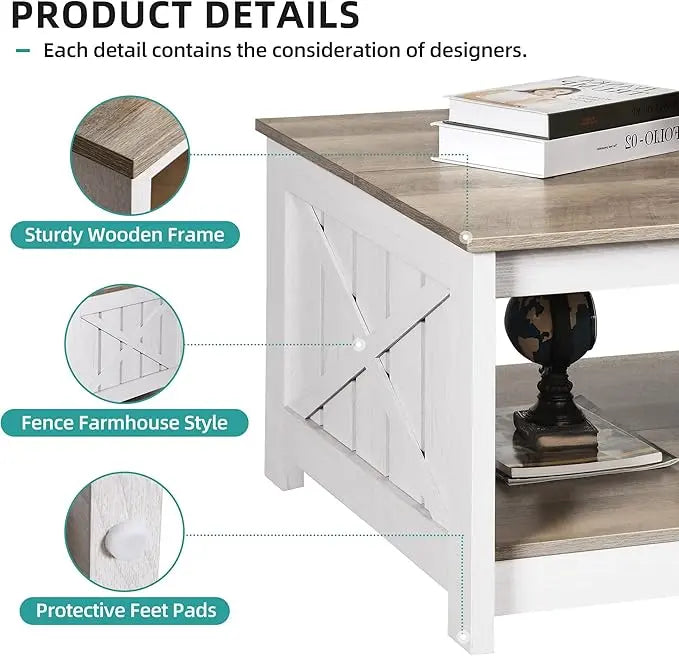 About This MODERN & FARM STYLE- Our coffee table combines the natural grey wash with grayish-white; the minimalist design also...