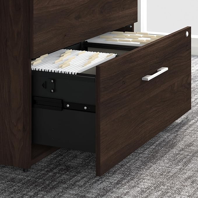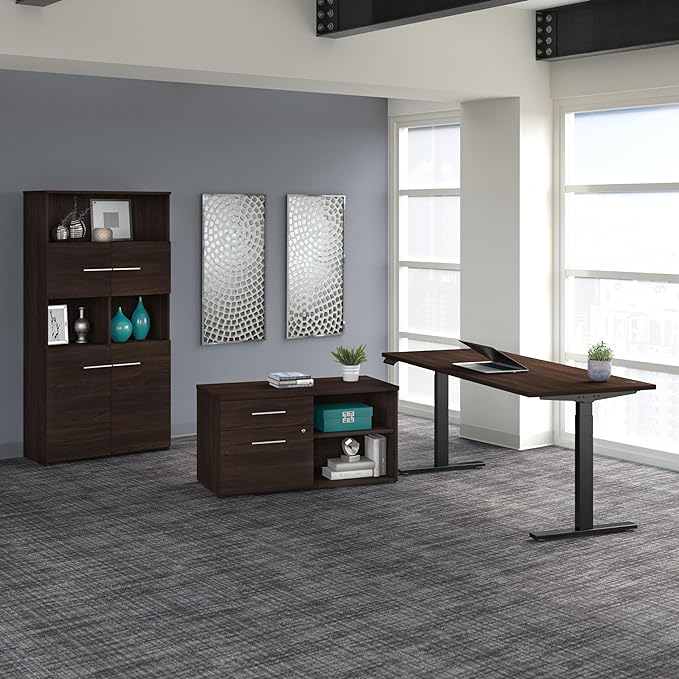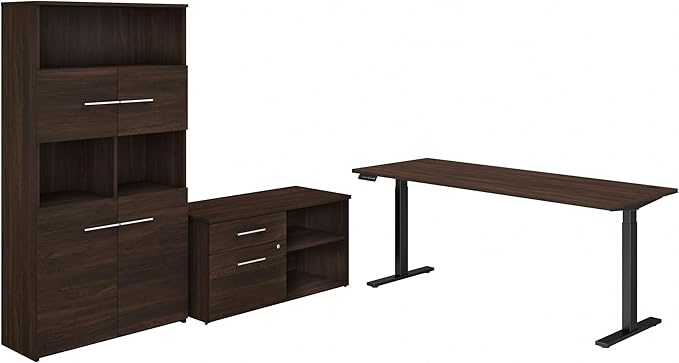 Bush Business Furniture Office 500 Height Adjustable Standing Desk with Storage and Bookcase, 72W, Black Walnut