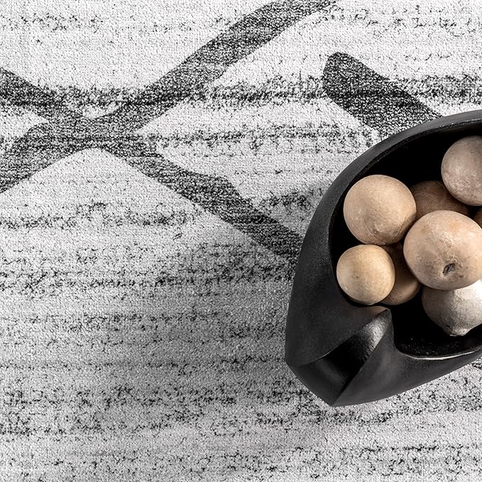 nuLOOM Trellis Stripes Machine Washable Ultra Thin Area Rug, 8' x 10', Light Grey