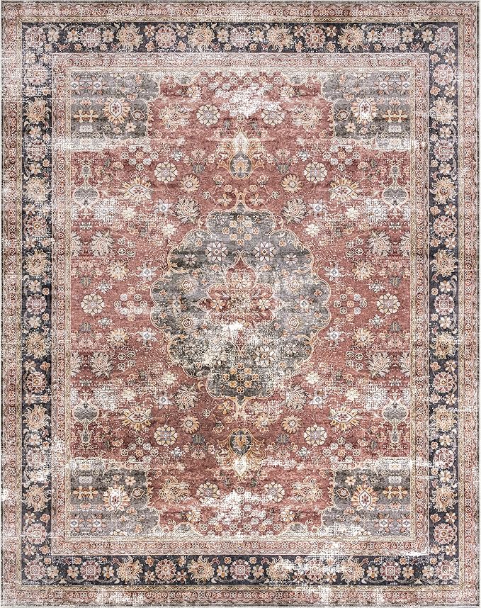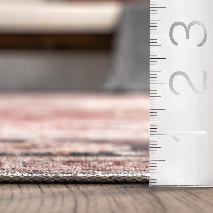 nuLOOM Emelina Traditional Persian Machine Washable Ultra Thin Area Rug, 8' x 10', Red
