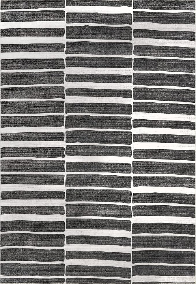 nuLOOM Henry Contemporary Striped Machine Washable Ultra Thin Area Rug, 5' x 8', Charcoal