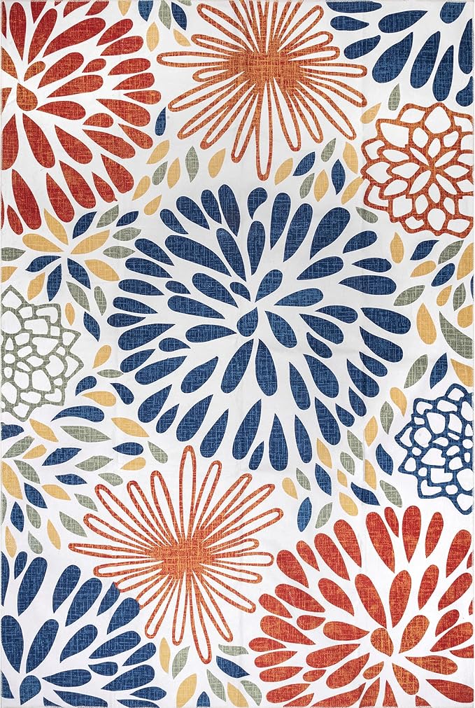 nuLOOM McEwen Bohemian Floral Machine Washable Ultra Thin Area Rug, 5' x 8', Multi