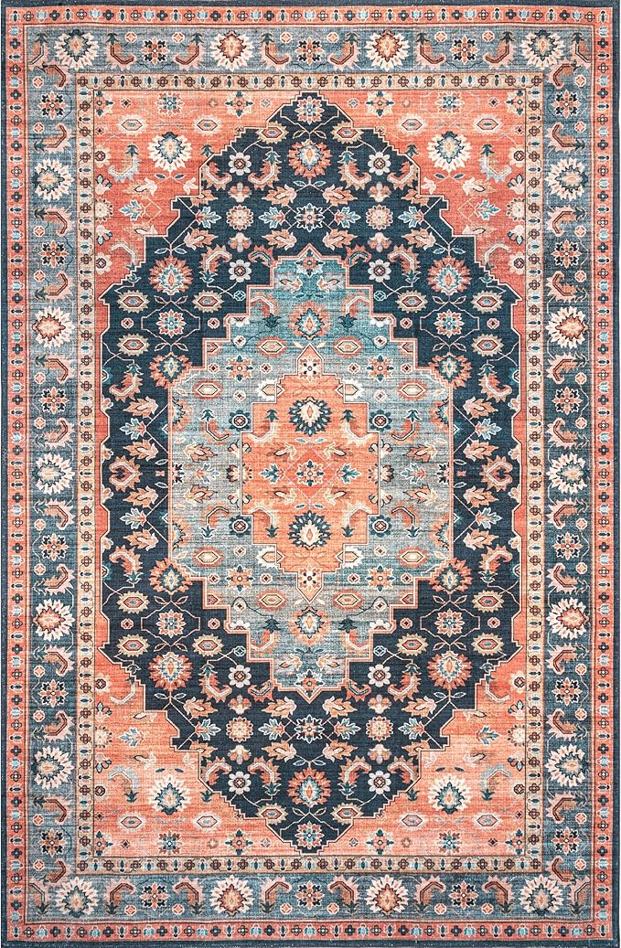 nuLOOM Francis Persian Medallion Machine Washable Ultra Thin Area Rug, 5' x 8', Blue