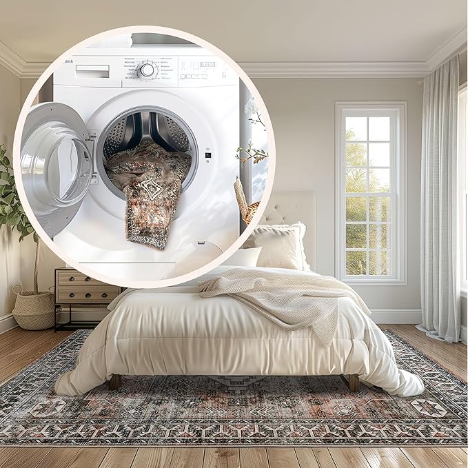 About This Stain-Resistant Material: Our machine washable rug is crafted from 100% Polyester that is stain-resistant, lightweight, and easy to...