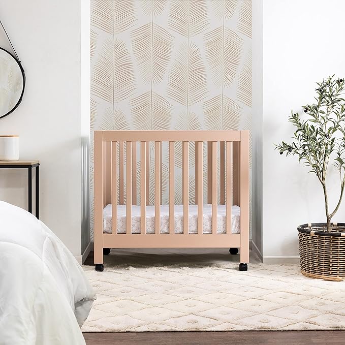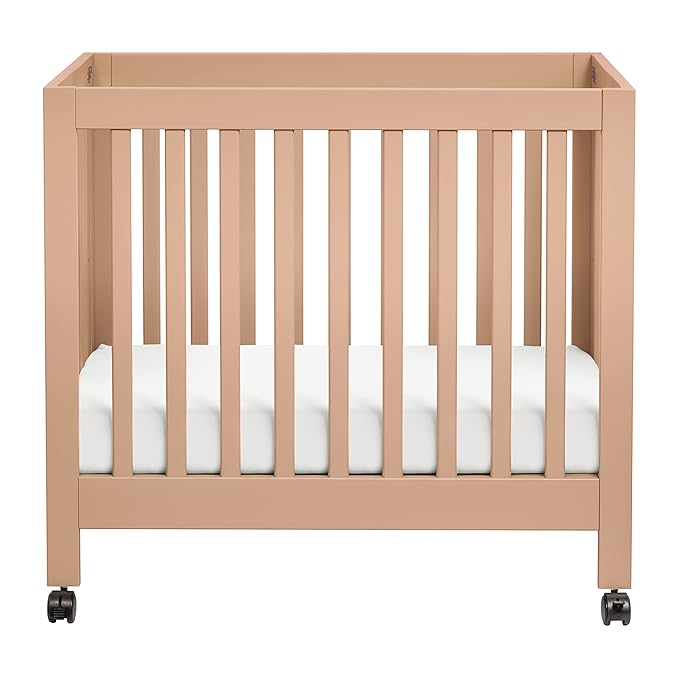 Babyletto Origami Mini Portable Folding Crib with Wheels in Canyon, 2 Adjustable Mattress Positions, Greenguard Gold Certified