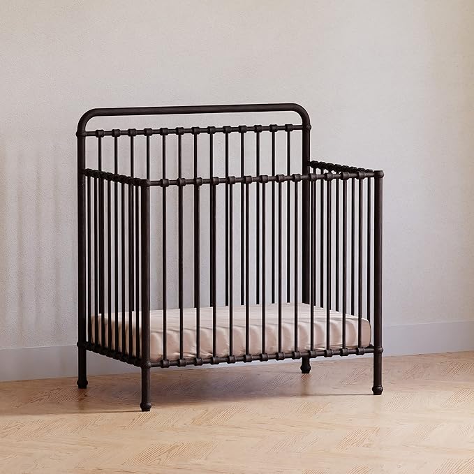 NAMESAKE Winston 4-in-1 Convertible Mini Metal Crib in Vintage Iron, Greenguard Gold Certified