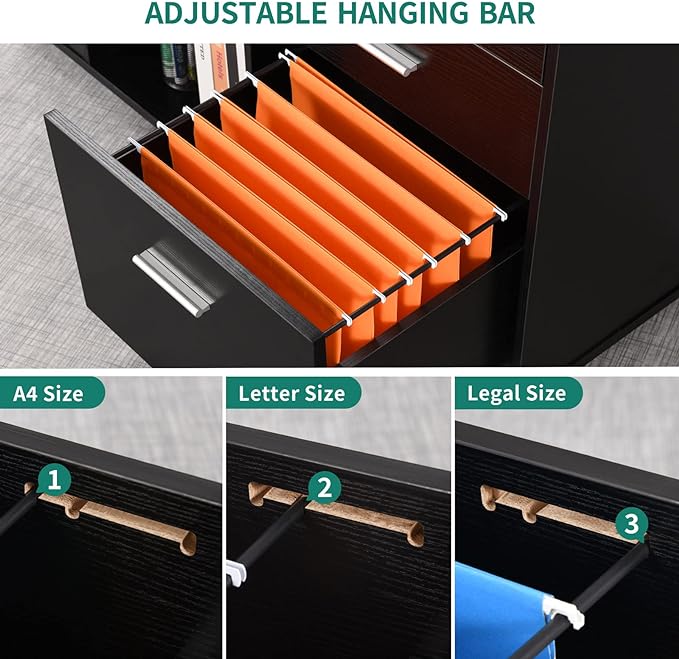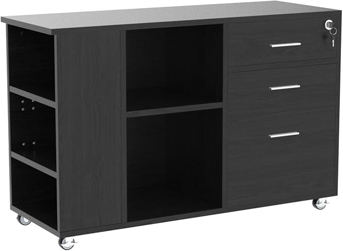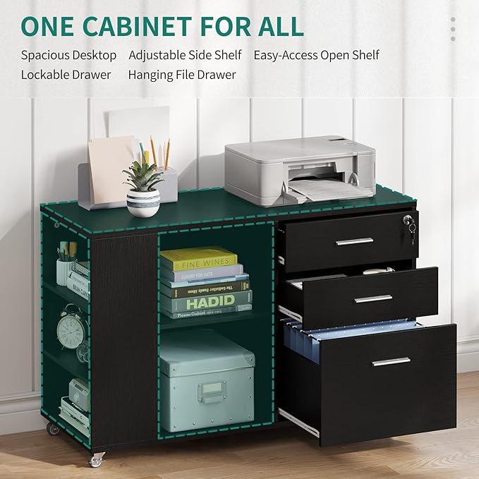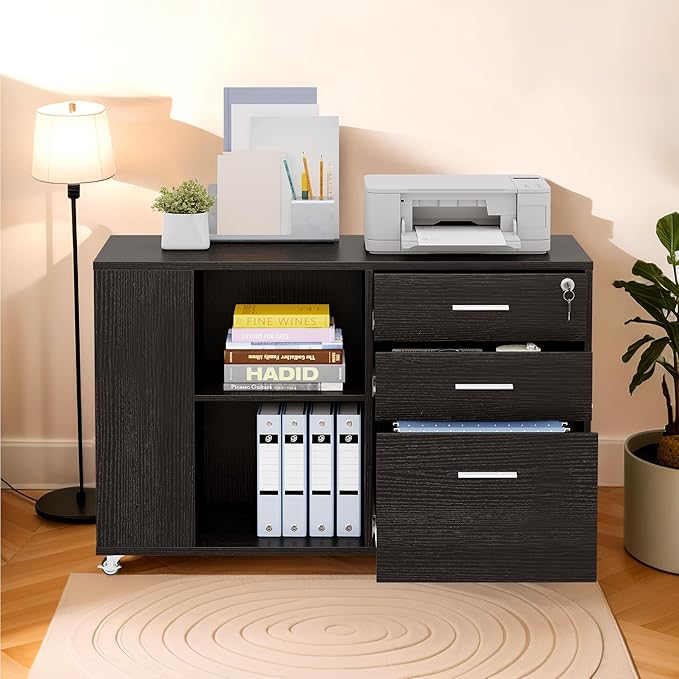 YITAHOME File Cabinet, Mobile Lateral Filing Cabinet with Lock for Home Office, Printer Stand with Open Storage Shelf, Fits A4, Letter, Legal Size Files, Office Furniture, Black
