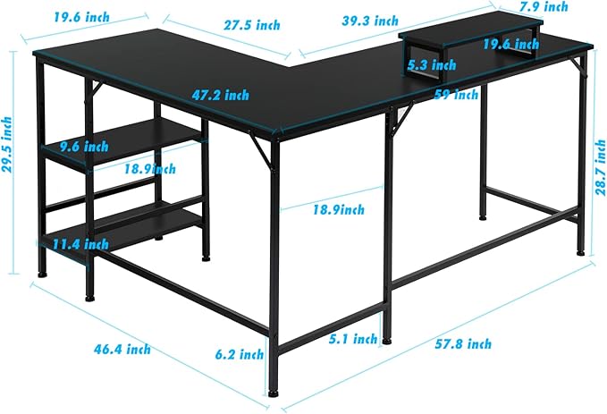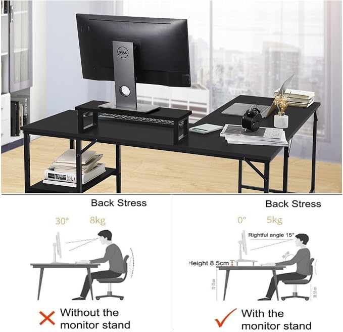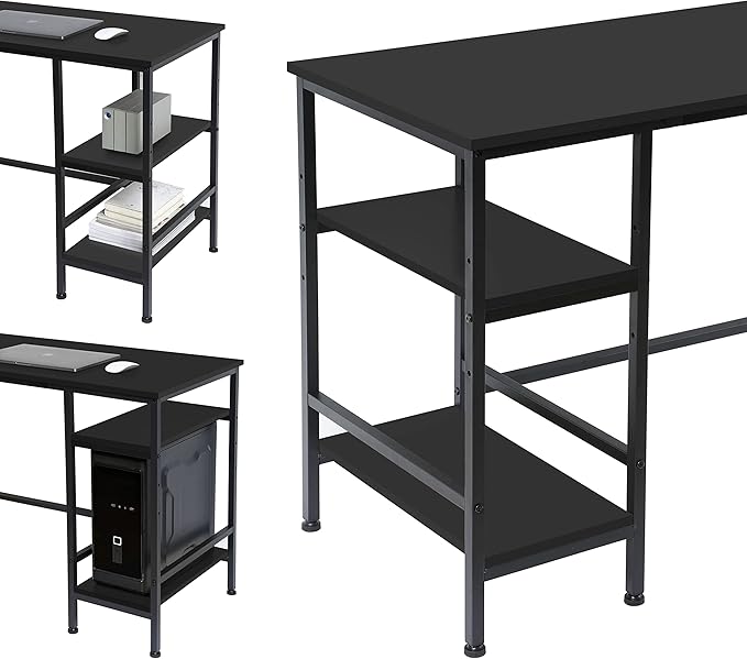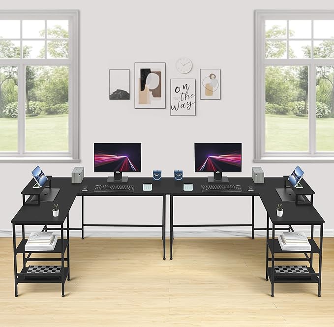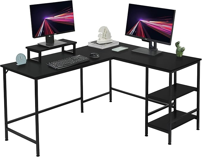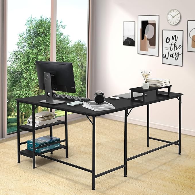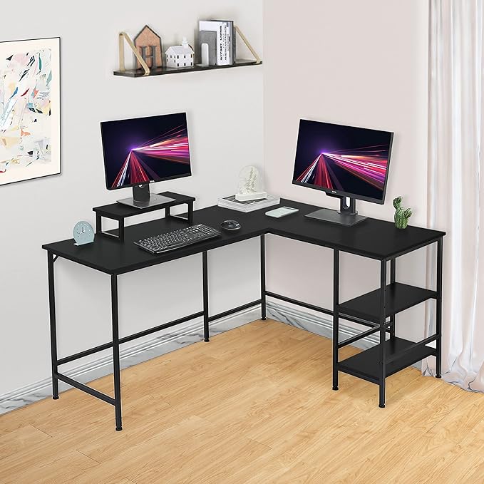 L-Shaped Desk,Corner Computer Desk with Storage Shelves,Large Gaming Desk PC Laptop Writing Workstation with Monitor Stand for Home Office Black