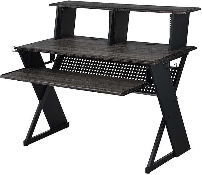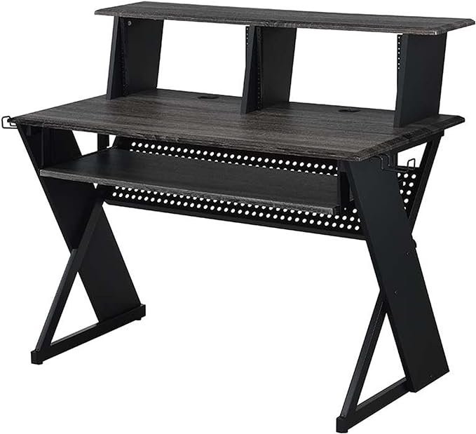 Acme Furniture Rectangular Music Desk Table with Earphone Rack, Black