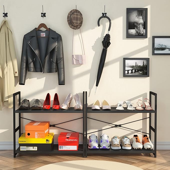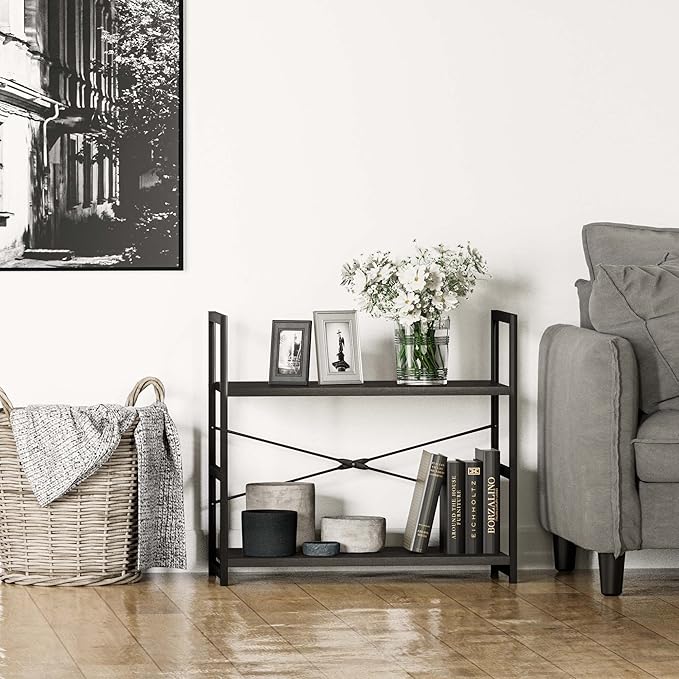 NUMENN 2 Tier Bookshelf, Bookcase Shelf Storage Organizer, Modern Book Shelf for Bedroom, Living Room and Home Office, Black
