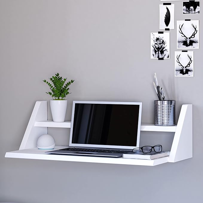 Reversible Wall Desk, White Floating Desk with Wall Mounted Shelf for Computer, Home, Office, Bedroom, Living, Kitchen and Study - L