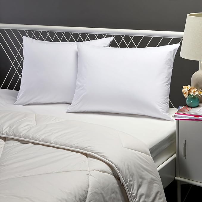 Amazon Basics Down Alternative Bed Pillows and Pillow Protector Case 2-Piece Set, Medium Density, Standard - Pack of 2, White, 26"L x 20"W