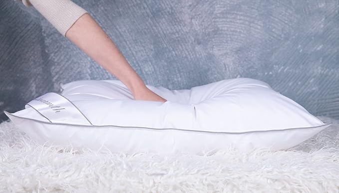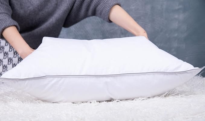 Goose Feather Down Bed Pillow for Sleeping 2 Pack,100% Cotton Cover Medium Firm Queen Size Set of 2 Gussted White