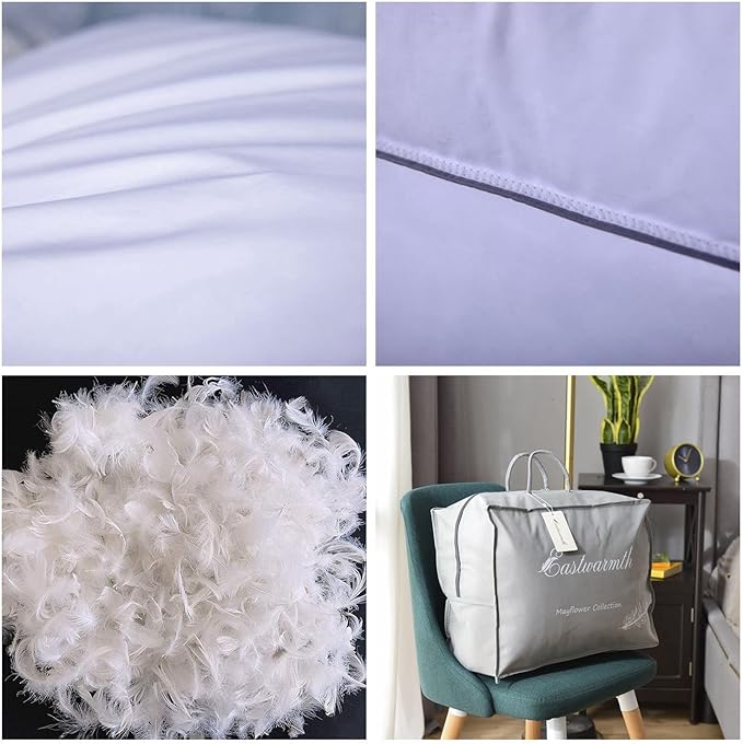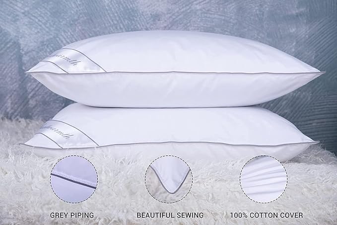 King Size Goose Feather Down Bed Pillow 2 Pack for Sleeping 100% Cotton Cover Medium Firm Set of 2 King Size Gussted White