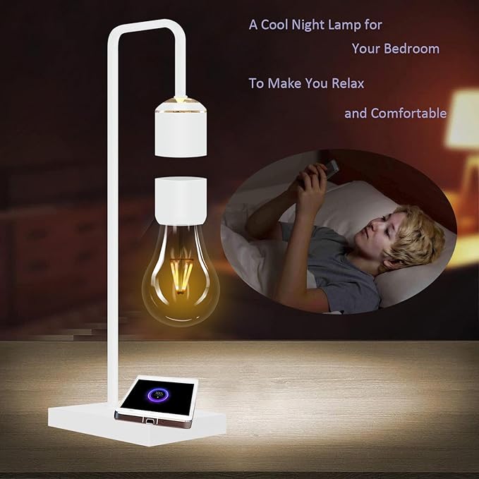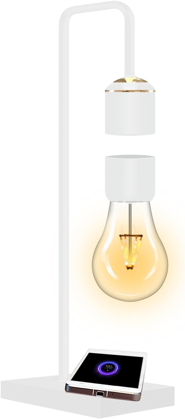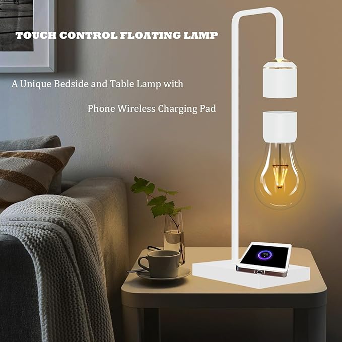 Magnetic Levitating Lamp with Phone Wireless Charging Pad 24.5" Floating White Table Lamp Nightstand Lamp Bedside Lamp White Lamp for Bedrooms & Living Room Christmas Gift Home Decoration