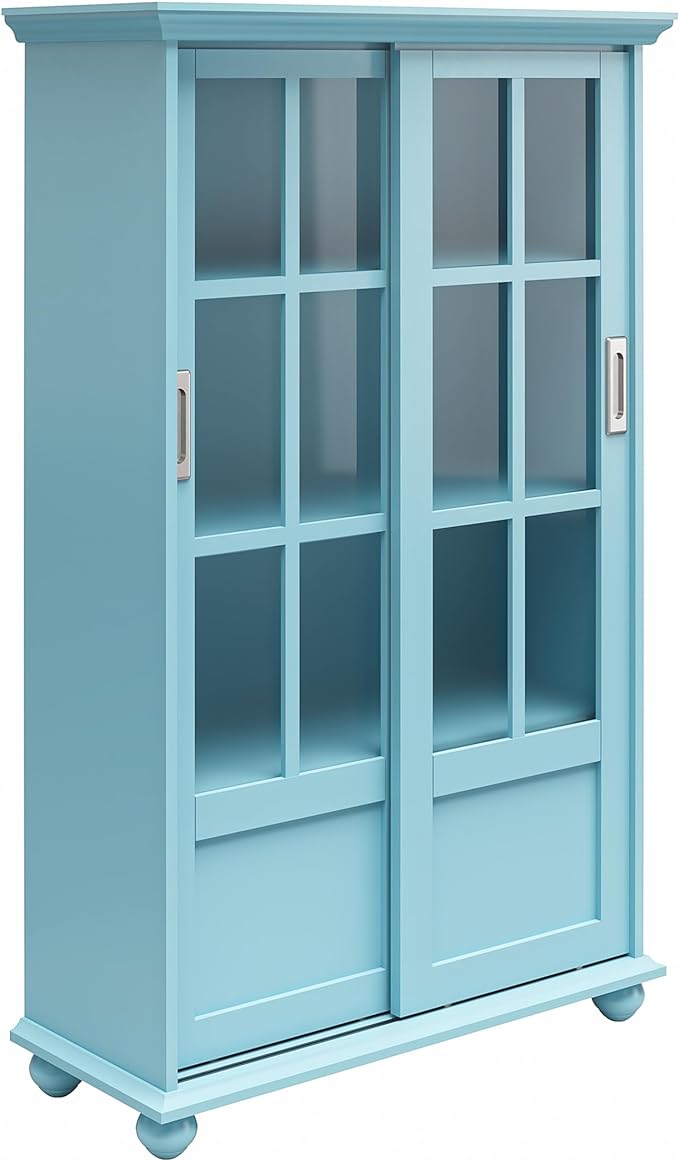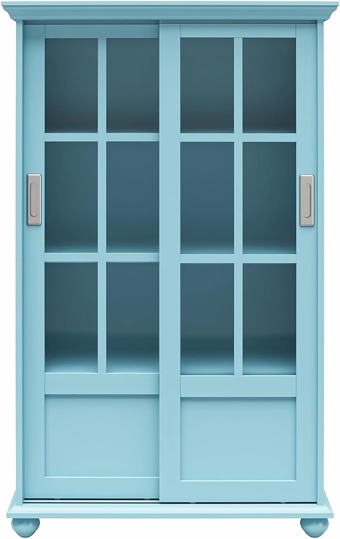 Ameriwood Home Aaron Lane Bookcase with Sliding Glass Doors, Pale Blue