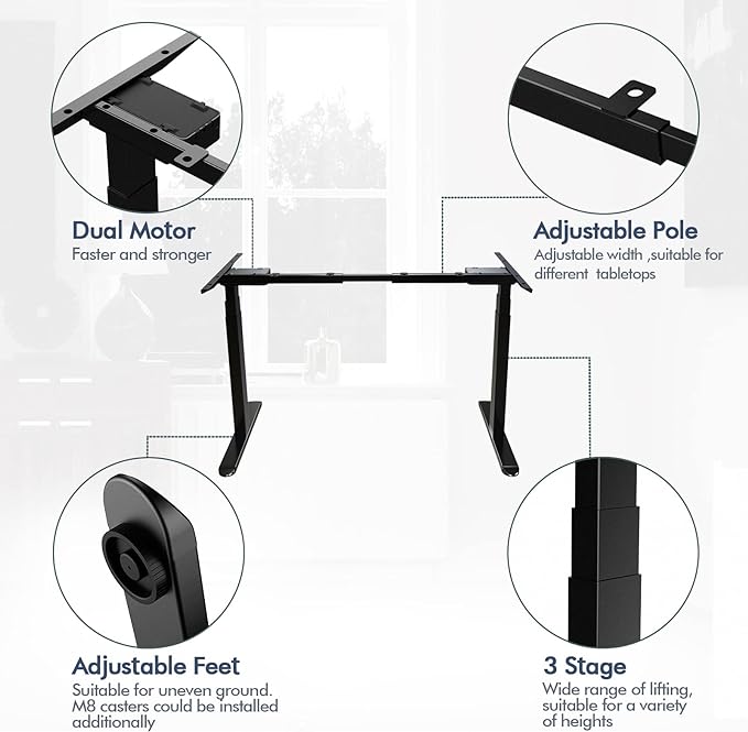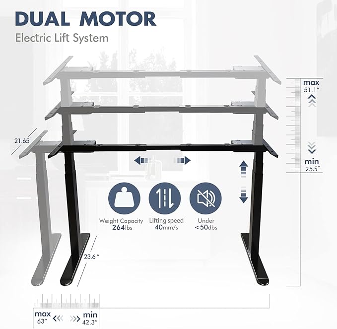 About This 【 DUAL MOTOR ELECTRIC LIFT SYSTEM】The AIMEZO electric standing desk frame has dual motor lift system offers height...