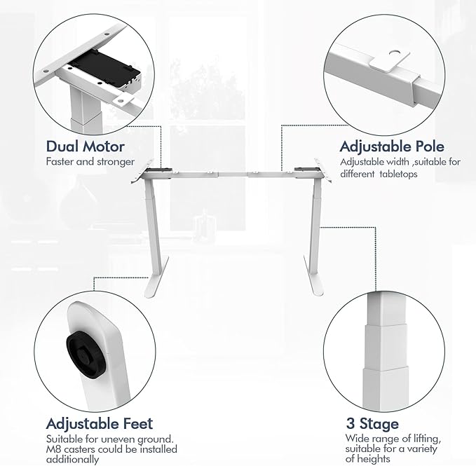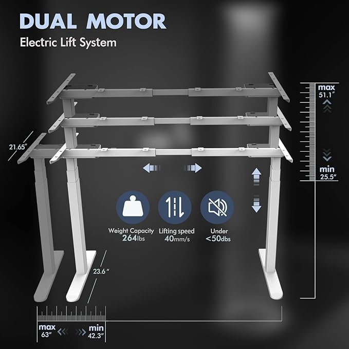 About This 【 DUAL MOTOR ELECTRIC LIFT SYSTEM】 The AIMEZO electric standing desk frame has dual motor lift system offers...