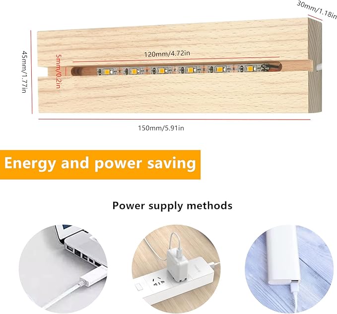 About This Bright light: This Rectangle LED wood light base displays used 6 LED patch and has enough brightness to...