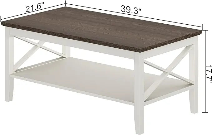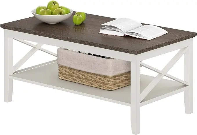 ChooChoo Oxford Coffee Table, Wooden Coffee Table with Thicker Legs, White Coffee Table with Storage for Living Room