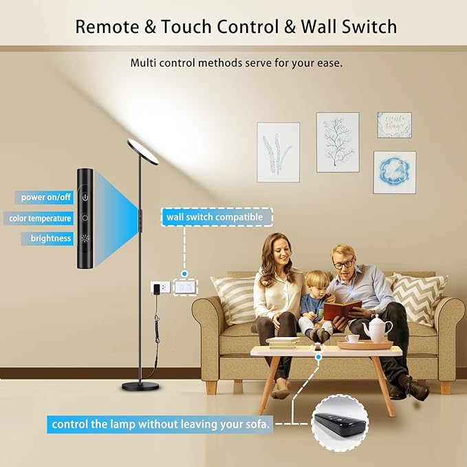LED Floor Lamp, 2400LM Super Bright Standing Lamp 250W Equivalent with 2700K-6500K Stepless Dimming, Modern Torchiere Sky Lamp with Remote & Touch Control, 69" Tall Lamp for Living Room Bedroom Office