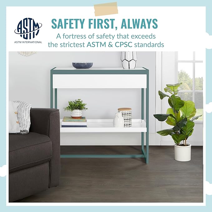 About This DESIGNED FOR STORAGE: The Arlo Changing Table comes with 1 spacious fixed shelves STURDY FINISH: This changing table...