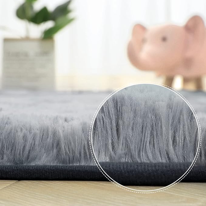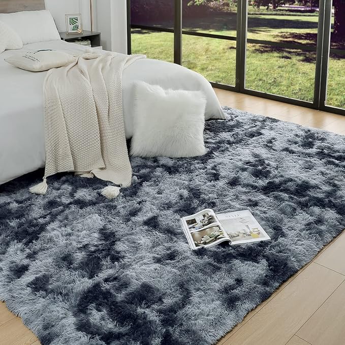 AROGAN Soft Rainbow Area Rugs for Girls Room, Fluffy Girls Bedroom Rugs, Princess Rug, Cute Colorful Carpet for Kids Teens Nursery Toddler (Blue-Grey, 4×6 Feet)