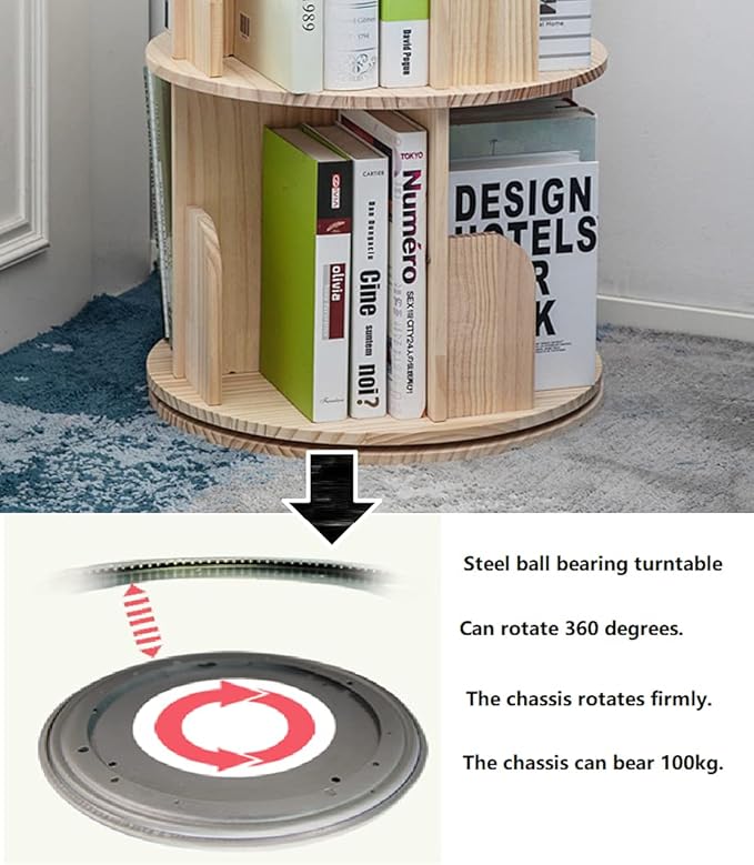 Heehee 2 Rotating Bookshelf 360 Display Floor Standing Bookcase Storage Rack for Kids&Adults Multi-Functional Bookshelf Organizer (2-Tier)