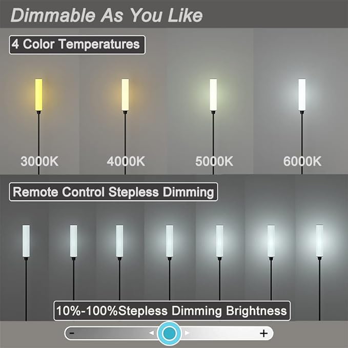 Floor Lamp with Remote Control,Bright Floor Lamps for Living Room/Bedroom/Office, Stepless Adjustable 3000K-6000K Colors and 10-100% Brightness,Standing Light with Foot Switch (Black)