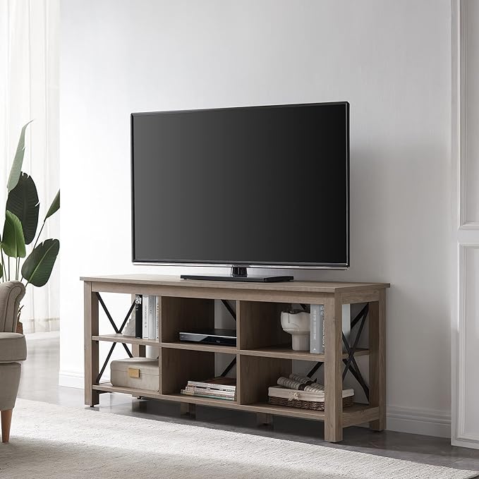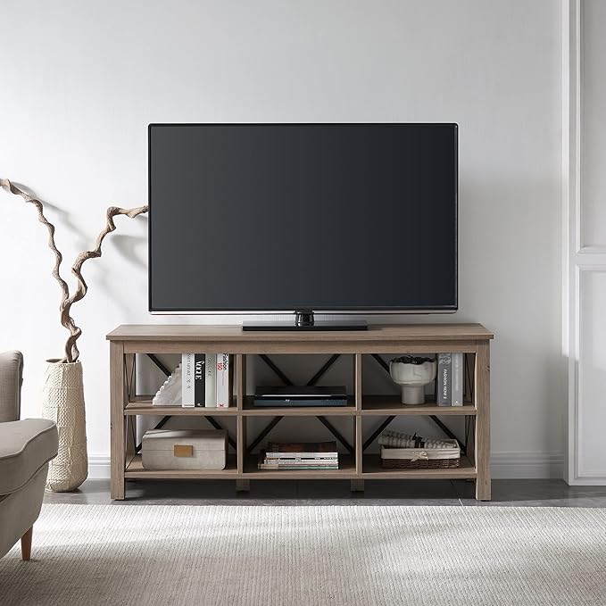 Henn&Hart Rectangular TV Stand for TV's up to 65" in Antiqued Gray Oak, TV Stands for the Living Room
