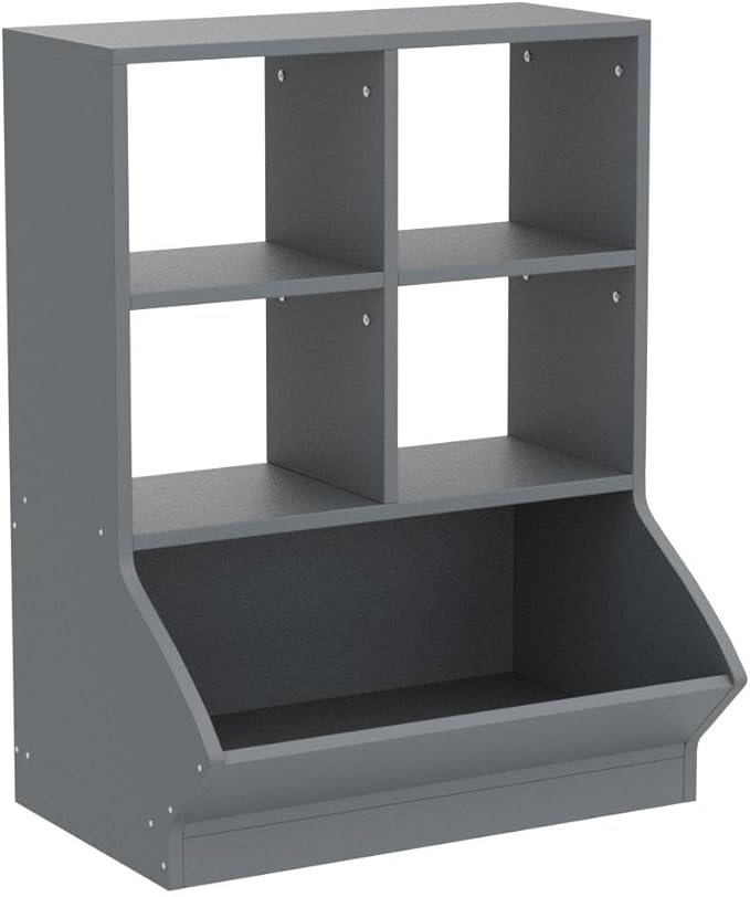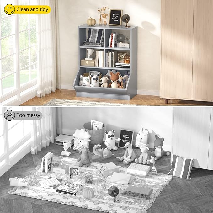 About This 【Sturdy Grey Bookshelf】: The Toy Storage bins is make of high-quality P2 MDF Board provides great stability and...