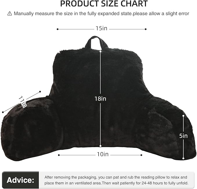 Aimuan Reading Pillow Bed Rest Pillow with Arms Rabbit Fur Cushion for Adults Teens Incline Rest Sitting up & Sleeping Snoring Pillow with Pregnancy Lumbar Back Support (Standard, Black)