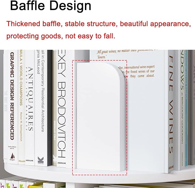 5 Tier Rotating Bookshelf 360° Revolving Bookcase Modern Tall Book Shelf Storage Display Rack Floor Standing Shelves with Baffle for Home Living Room Study Office White 63''X18''X18''
