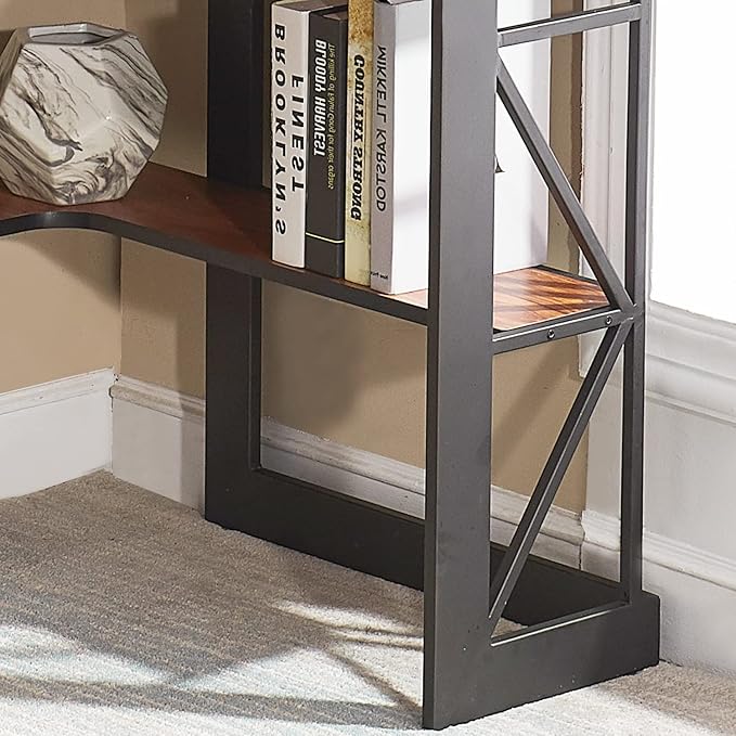 About This Corner desk with keyboard tray and two open shelves on the side provides working space and extra plenty...