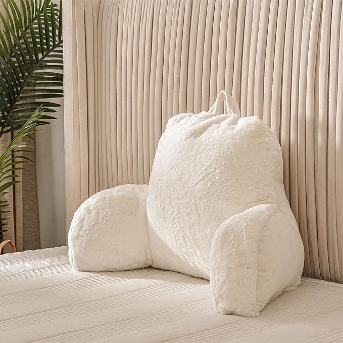 Aimuan Reading Pillow Bed Rest Wedge Large Adult Backrest Pillow with Arms Back Support for Sitting Up in Bed Cushion Incline Rest Sleeping Snoring Pillow, Ivory