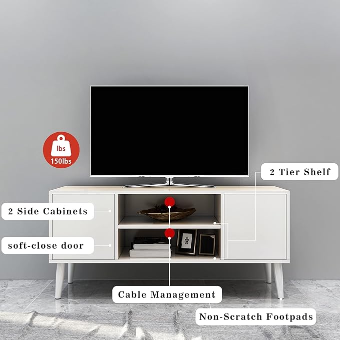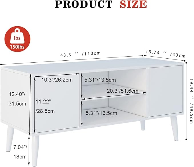 About This đșăModern TV Stand for 55"TVsăOverall dimension: 43.3" W x 15.7" D x 19.4" H, and the weight capacity...