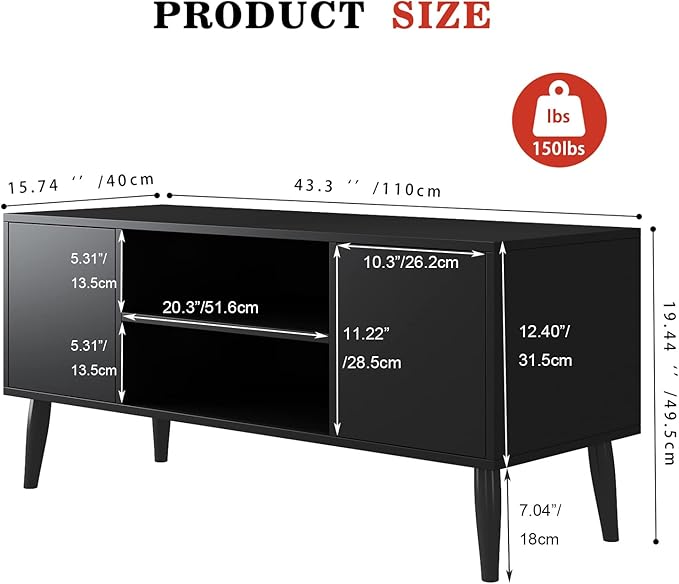About This đșăModern TV Stand for 55"TVsăOverall dimension: 43.3" W x 15.7" D x 19.4" H, and the weight capacity...