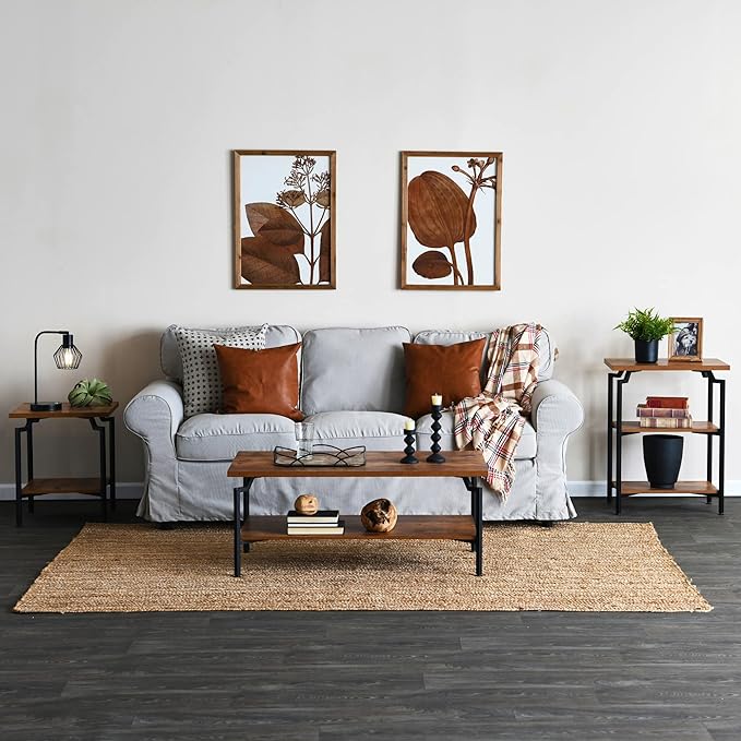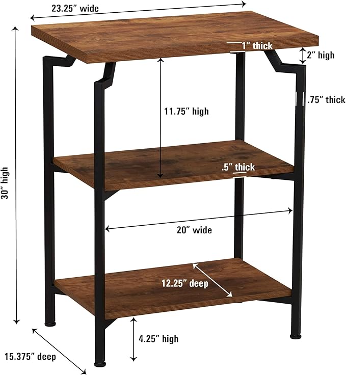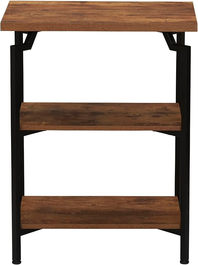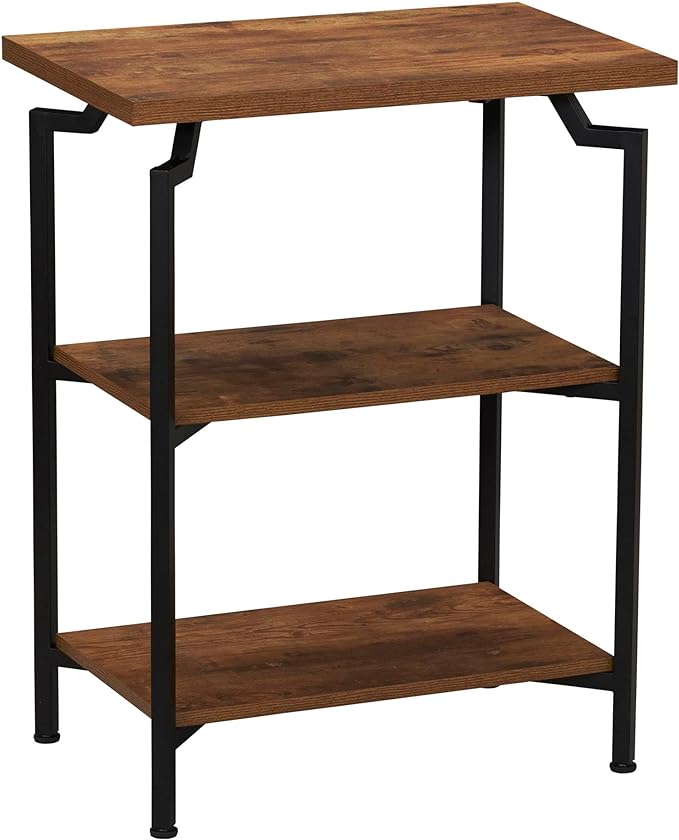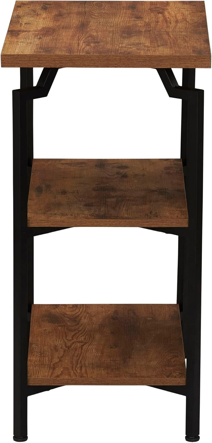 Household Essentials Crown Narrow 3 Shelf Open Storage Bookshelf Rustic Hickory Wood Grain and Black Metal