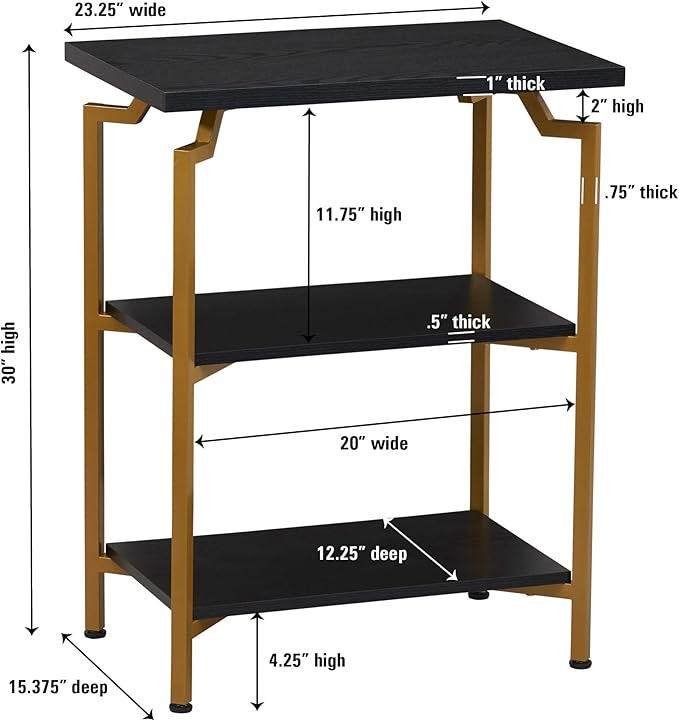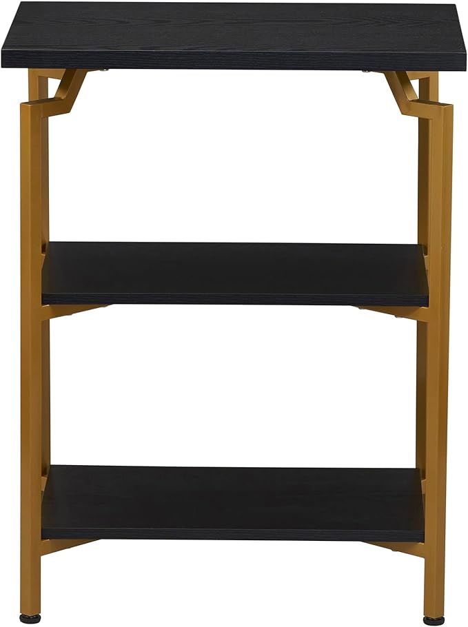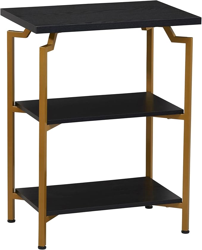 Household Essentials Crown Narrow 3 Shelf Open Storage Bookshelf Black Oak Wood Grain and Gold Metal