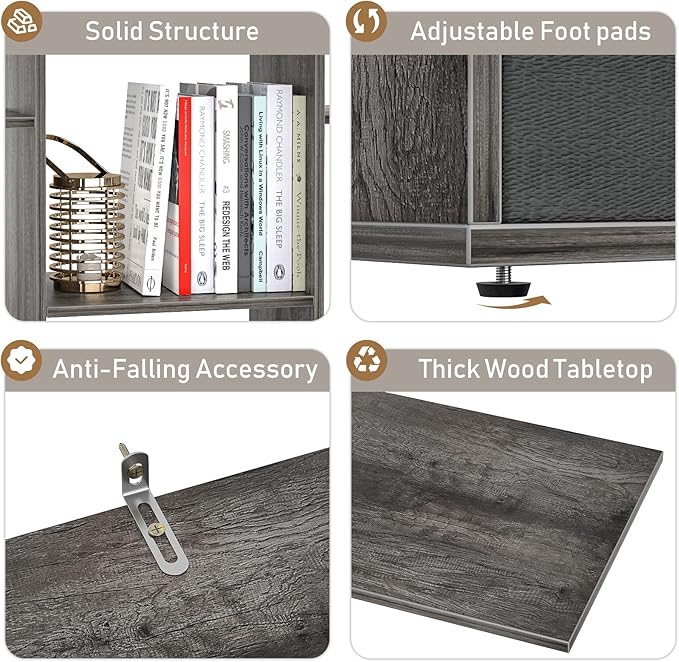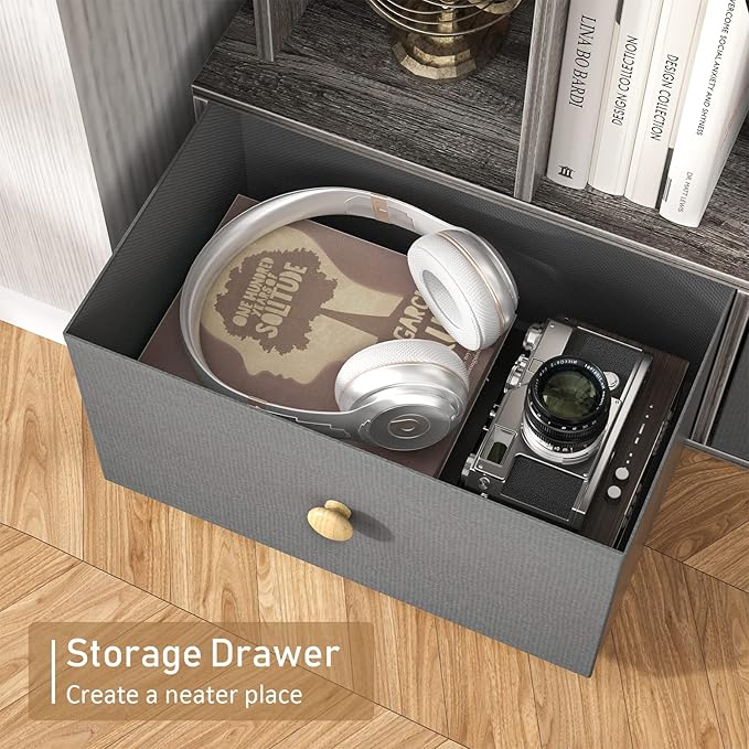 Unikito Book Shelf with 2 Drawers Free Standing Bookcase, Office Storage Shelf Organizer with 12 Open Bookshelf, Industrial Wood Book Case Display Rack for Bedroom, Living Room Home Office, Gray Oak