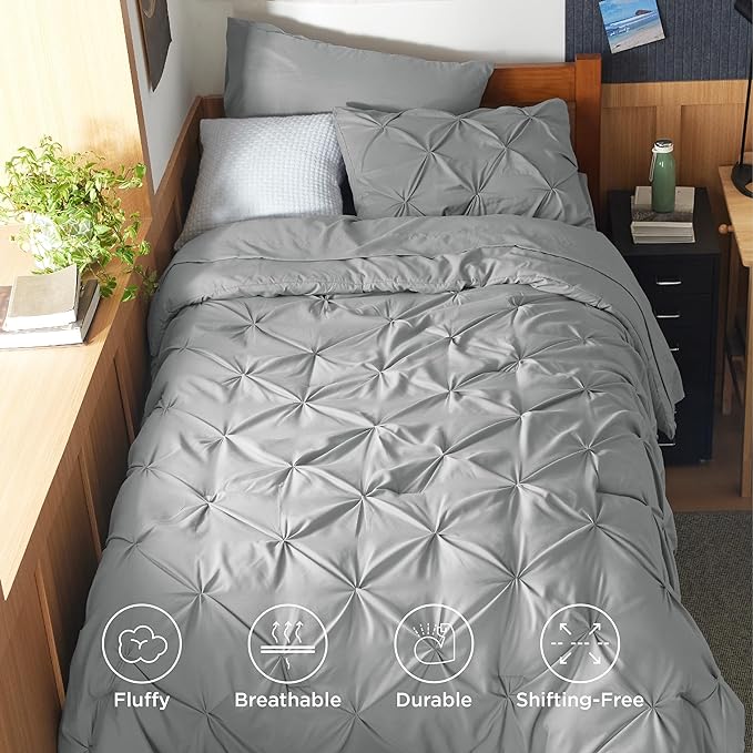 Bedsure Twin XL Comforter Set - Extra Long 5 Pieces Dorm Bedding Sets, Pinch Pleat Grey Bed in a Bag with Comforter, Sheets, Pillowcase & Sham