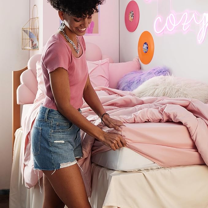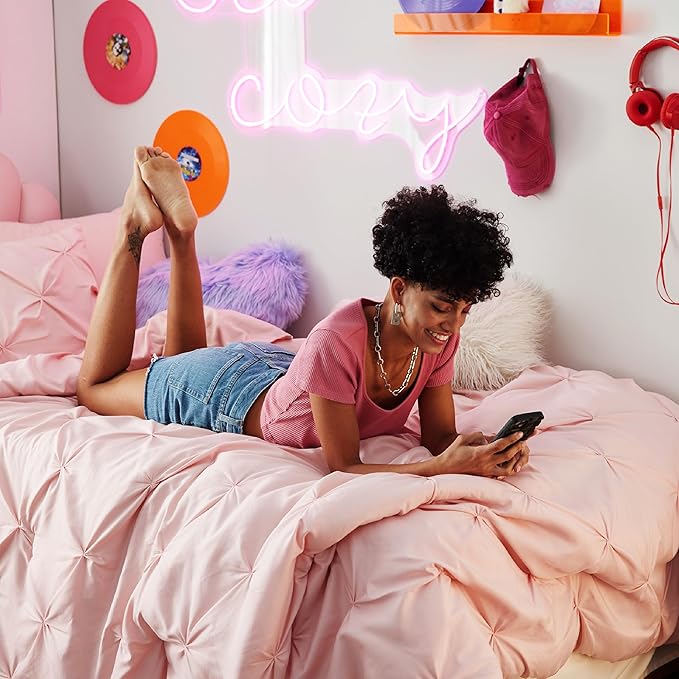 Bedsure Twin XL Comforter Set for Girls - Extra Long 5 Pieces Dorm Bedding Sets, Pinch Pleat Pink Bed in a Bag with Comforter, Sheets, Pillowcase & Sham