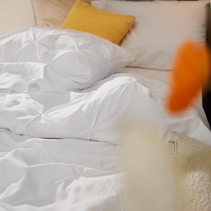 Bedsure Twin XL Comforter Set - Extra Long 5 Pieces Dorm Bedding Sets, Pinch Pleat White Bed in a Bag with Comforter, Sheets, Pillowcase & Sham