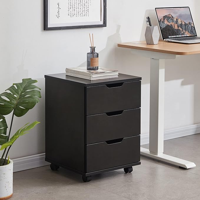 Farini 3-Drawer Vertical Filing Cabinet Rolling Wood Mobile File Cabinets Under Desk for Home Office with Casters (Black, Fully Assembled)