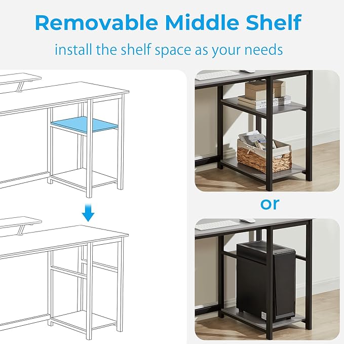 GreenForest Computer Desk with Monitor Stand,47 inch Home Office Desk with Reversible Storage Shelves,Modern Writing Desk Study PC Laptop Work Table,Grey