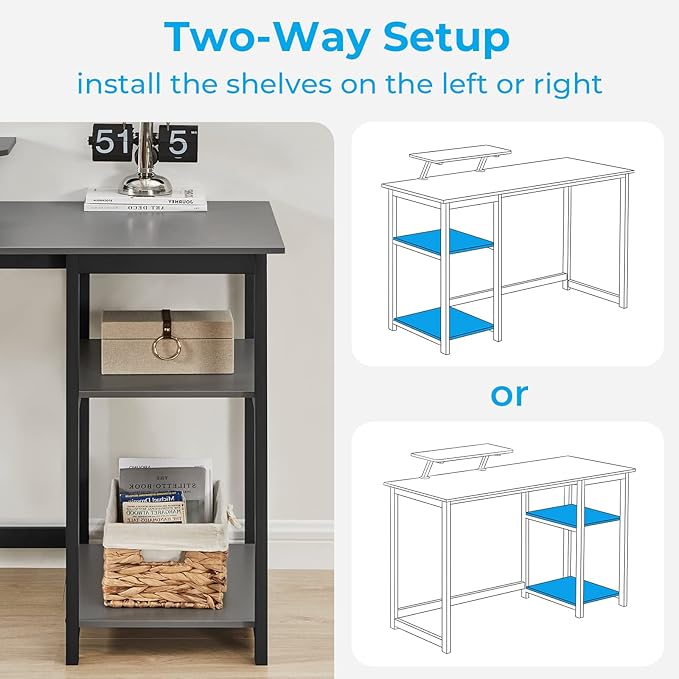 GreenForest Computer Home Office Desk with Monitor Stand and Reversible Storage Shelves,55 inch Modern Simple Writing Study PC Work Table,Grey